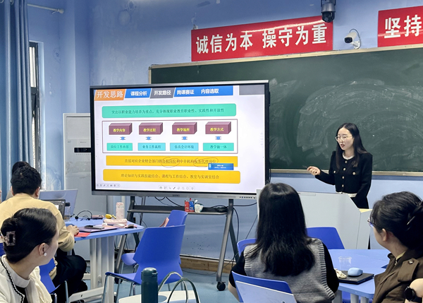 经验分享环节。三位课程改革项目负责人分享撰写开题报告经验。周艳副教授以《构建高性能园区网》课程为例,详细介绍了如何围绕“园区网、路由网、广域网”三网,紧跟行业发展趋势重构教学内容,并通过“一主线、两平台、三阶段、四融通、五环节”的创新教学模式,阐述了课程改革的总体思路、课程设计、资源建设和任务分解等具体内容。谭渊源副教授基于《高职语文》课程,分享了如何落实“以学生为中心”的教学理念、如何促进学生的实践能力以及如何开展产教融合等核心问题。曾文君老师以《智慧化税费申报与管理》为例,结合教师能力竞赛心得体会,详细讲解了课程改革开题报告的撰写过程。主讲教师们精美的PPT和精彩的讲述,深深吸引了在场的每一位教师。