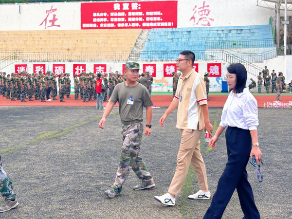 训练场上,除了新生们的身影,还有几道温暖又坚实的风景线。教官们耐心十足,手把手纠正动作细节,一句句“再来一次”“注意重心”,既有严格要求,也藏着温柔期许;辅导员们和志愿者学长学姐们化身“后勤保障队”,穿梭在队伍间递水送纸巾,在医务室旁协助照料身体不适的同学,用“过来人”的经验分享军训小技巧,让初入校园的新生们倍感温暖;龚鹏副院长更是每日坚守军训现场,从训练节奏调整到新生状态关怀,事无巨细地指导工作,发现有同学面露疲惫,他会及时协调休息,叮嘱大家兼顾训练与健康,用细致的指导为军训顺利开展保驾护航。